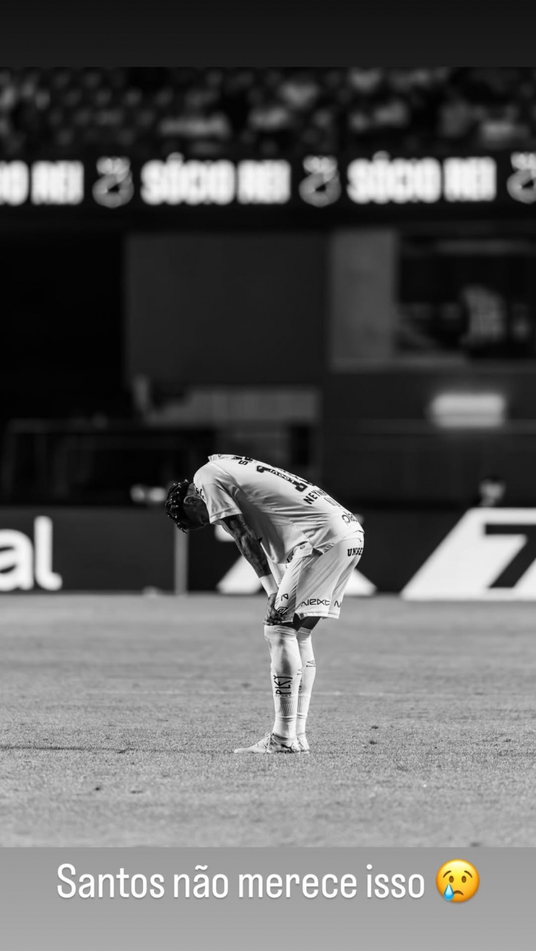 内马尔在社交媒体上晒出自己赛后失落的黑白照片,并配文“桑托斯不该遭受这样的失利😢”,表达自己的失望之情。